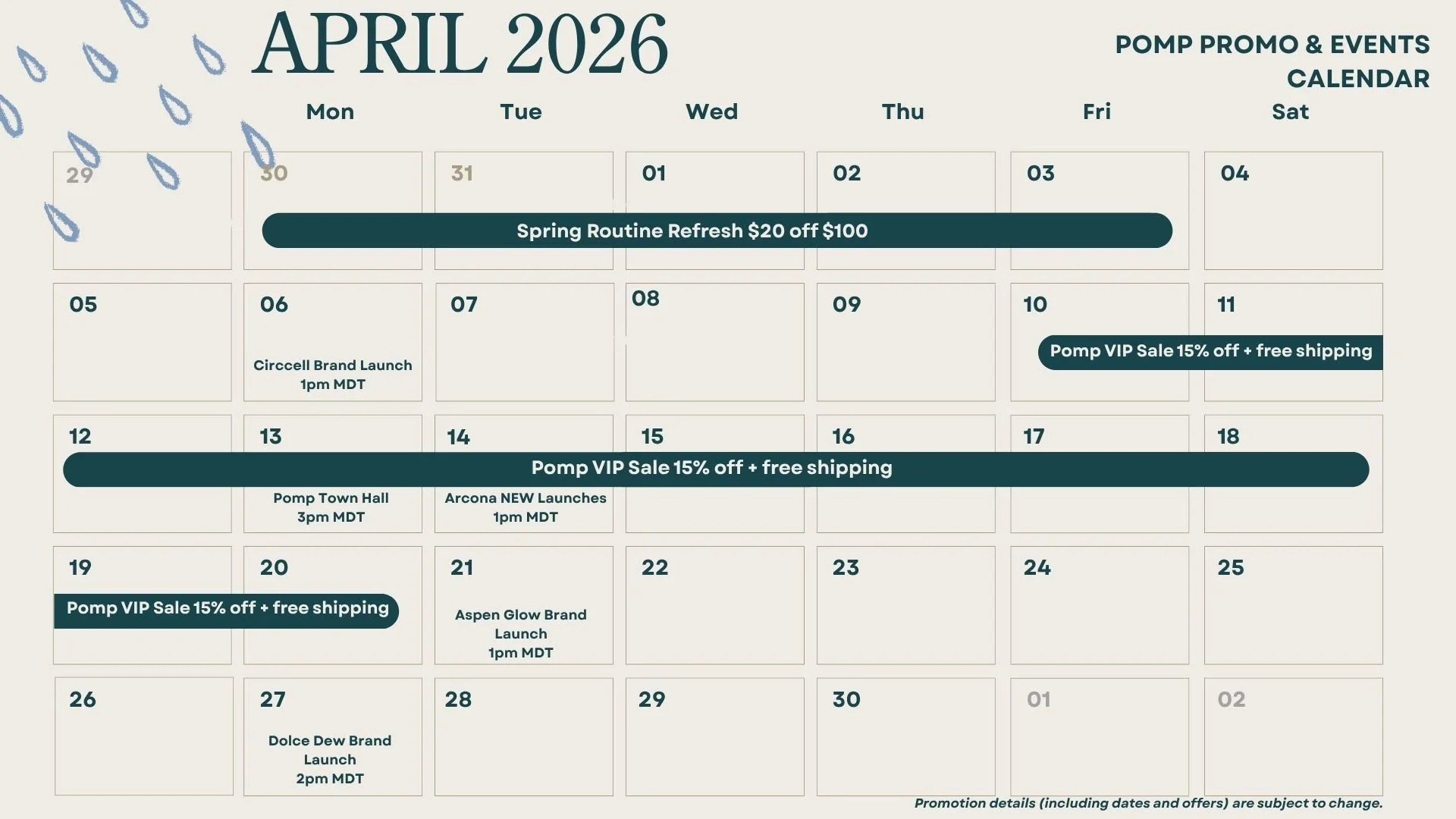 Save our April Pomp Calendar to easily share upcoming promotions with your clients and stay in the loop on educational webinars and events.