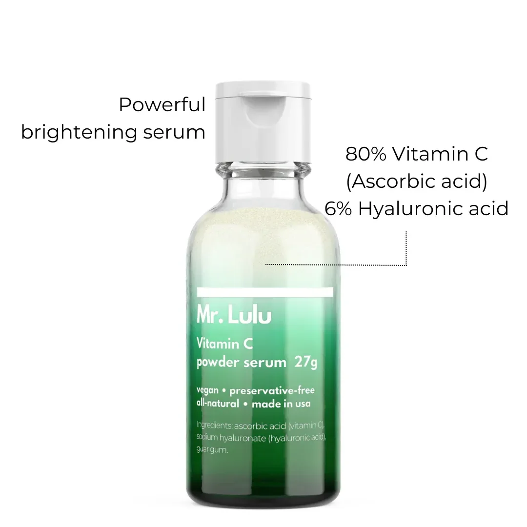 Professional-grade powder serum: ultra-concentrated Vitamin C (ascorbic acid) powerhouse designed to quickly brighten and smooth skin. Just add water to activate and target all forms of pigmentation challenges.